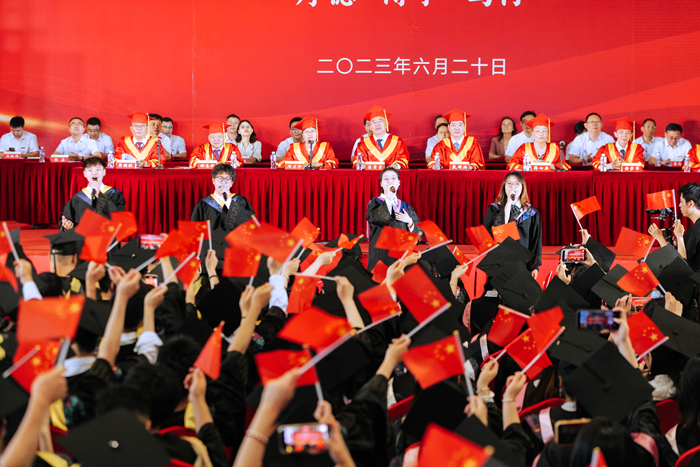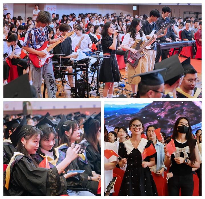 毕业典礼在全体师生大合唱《我爱你中国》中圆满落下帷幕。(图/孔祥建、大学生通讯社 王乐;文/学生工作处 李金东、周阳;审核/王振伟;编辑/许琳)