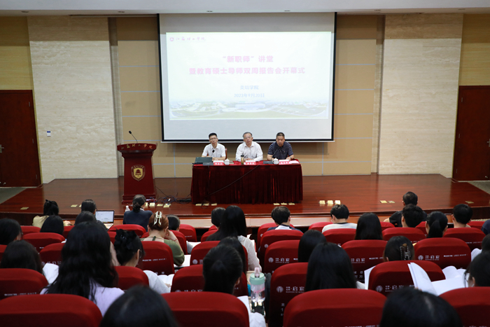郝永贞介绍了“新职师”讲堂暨教育硕士导师双周报告会的背景意义与具体安排。教育硕士导师代表陈春霞以“踏实”“主动”“享受”为关键词,对研究生即将踏上研究之路提出建议。