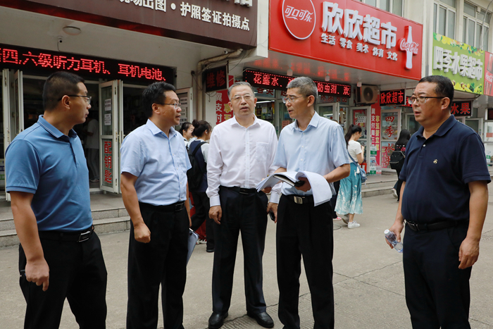 适逢中秋、国庆来临之际,为贯彻上级有关文件精神,切实做好中秋国庆双节前后学校的安全保卫工作,9月27日上午,校党委书记崔景贵,校党委副书记贝绍轶,校党委常委、副校长俞亚萍,校党委常委、纪委书记、派驻监察专员史晓进带队开展“迎双节”安全检查。党办校办、学工处、后勤保障处、资产经营公司、保卫处等相关部门负责人陪同检查。