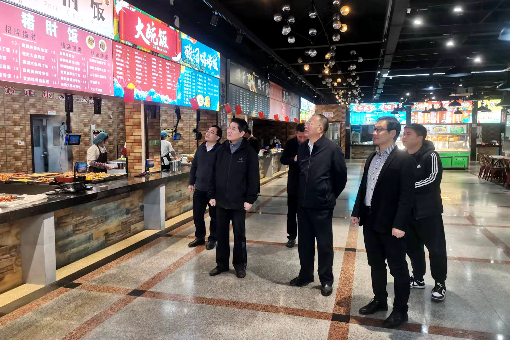 校领导实地察看食堂环境卫生、饭菜花色品种、仓储物资管理等,重点调研了“明厨亮灶”建设情况,详细了解日常食品卫生安全监管举措,并与食堂员工亲切交谈,叮嘱他们要严把食品卫生安全关、加工关、售卖关,持续提升餐饮服务质量和水平。