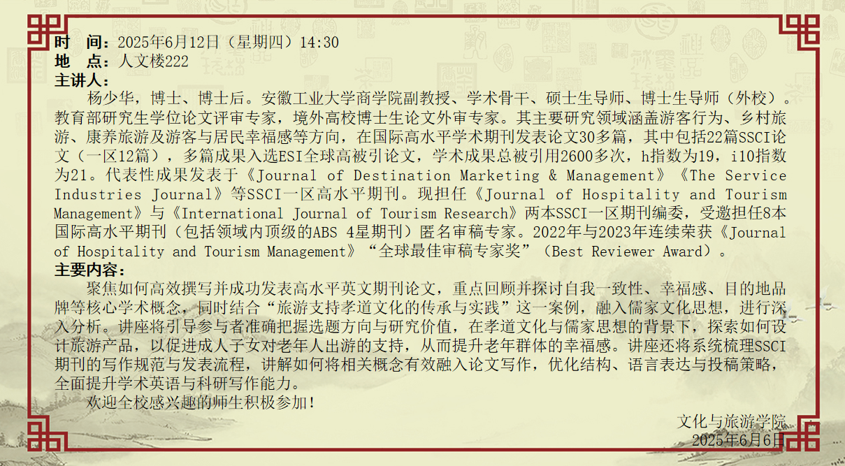 6月12日:对接国际话语体系:旅游研究高水平论文的学术表达与发表路径