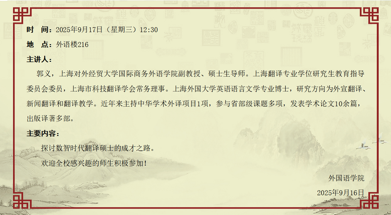 9月17日:The Making of an MTIer: 数智时代翻译硕士的成才之路