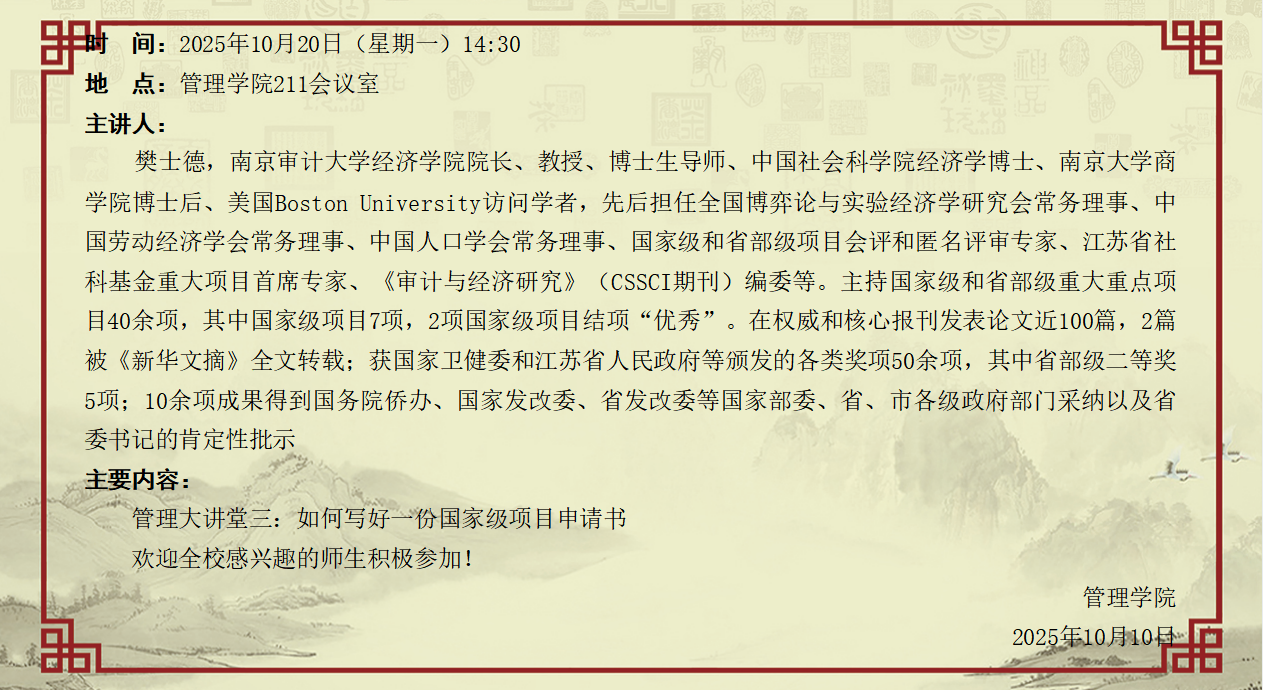 10月20日:管理大讲堂三:如何写好一份国家级项目申请书
