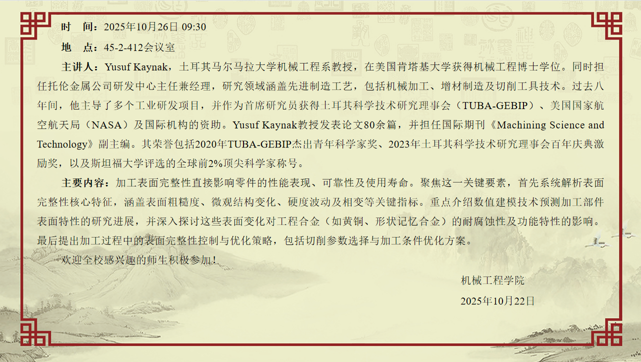 10月26日:机械加工部件的表面完整性:特征、影响和控制