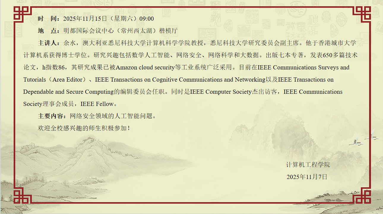 11月15日:Artificial Intelligence for Network Security Today and Tomorrow